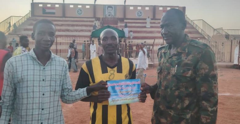 ونال لاعب الاتحاد 12 الحوش قمر محمد ادم نجومية المباراة المقدمة من رئيس نادي الاتحاد.