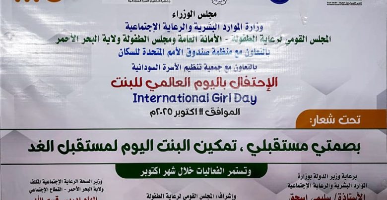 يحتفل العالم في اكتوبر من كل عام بيوم البنت حيث اعلنته الامم المتحدة ويجئ الاحتفال هذا العام والسودان يمر بتحديات امنية واقتصادية اثرت على الواقع الاجتماعي مما افرز العديد من التحديات بشان الحماية الاجتماعية الشاملة ولكن رغما عن ذلك ظلت الامانة العامة لمجلس رعاية الطفولة وآليات الحماية والشركاء الوطنيين والدوليين تعمل رغم الظروف لتقديم الدعم والعون لتنفيذ البرامج والمشروعات للأسر وفي هذا الأطار نظم المجلس القومي لرعاية الطفولة احتفال باليوم العالمي للبنت بكلية التربية جامعة البحر الاحمر تحت شعار (بصمتي مستقبلي ..تمكين البنت اليوم لمستقبل الغد) وسط حضور شعبي ومجتمعي حاشد بمشاركة مركز عبدالله ناجي للنازحين حيث افتتح البرنامج للاحتفالية بايات من الذكر الحكيم ومن ثم تمت تلاوة بيان الإحتفال بيوم البنت العالمي قدمته الطالبة عائشة حسين