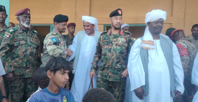 و الرائد محمد نور الدائم قائد قوات العمل الخاص و الشيخ الطاهر المحزوب شيخ سجادة المجازيب و الشيخ الضو احمد شولة و العمد و الشيوخ و ضباط صف و جنود القوات المسلحة
