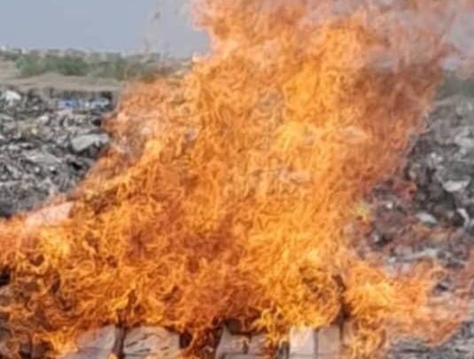 وتمت الإبادة بمكب نفايات مدينة الدويم، وتقدر كمية السلع المبادة بحوالي 2 طن شملت مواد غذائية متنوعة (حلويات – بسكويت – صلصة – مشروبات غازية)، بحضور ممثلين لكل من المدير التنفيذي والنيابة والصحة والشرطة والأمن الاقتصادي بمحلية الدويم.