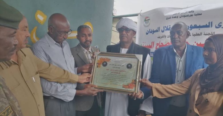 في الختام تم تكريم والي ولاية البحر الاحمر من الكيانات المشاركة في حملة اصحاح البيئة لدوره الفعال في رعاية هذه اللجنة والاهتمام باصحاح البيئة في كل المحليات بولايه البحر الاحمر.